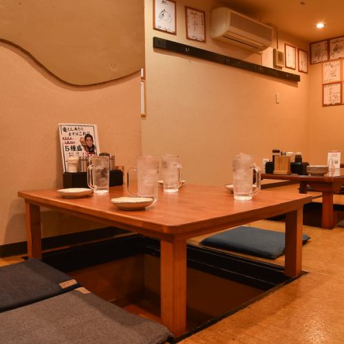 足を伸ばしてリラックスできる掘りごたつ席をご用意しております♪グループでの飲み会やご家族での団らん、女子会など、周囲を気にせずゆったりと過ごしたいシーンに最適です◎木の温もりが感じられる居心地の良いお席で、美味しい料理とお酒を囲みながら、話が弾む楽しい夜のひとときを心ゆくまでご堪能ください♪